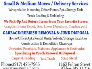 24/7 even on holidays…Now we even do LARGE MOVING SERVICE & JUNK REMOVAL We are experienced with moving small and large furniture thru tight areas. We are dedicated to service and complete all kinds of Cleanups and Junk removal jobs for a reasonable price. Junk Removal Rubbish Removal Construction Debris Scrap Metal Basement cleanups Garage ...